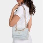 - Convertible shoulder-to-crossbody chain strap with charms