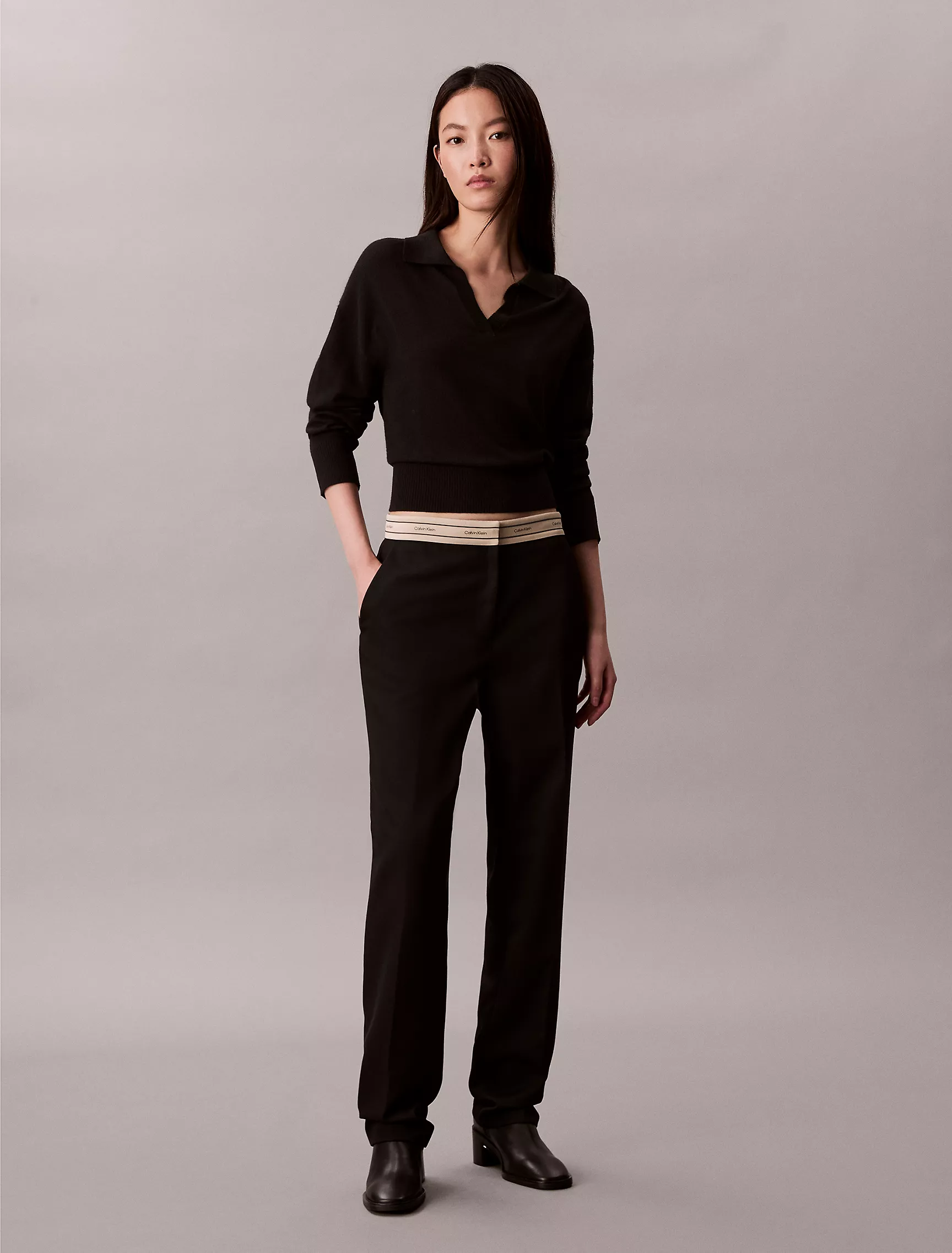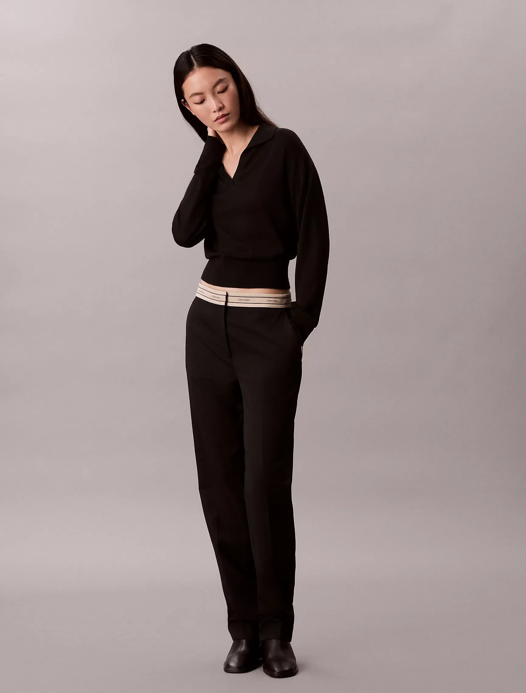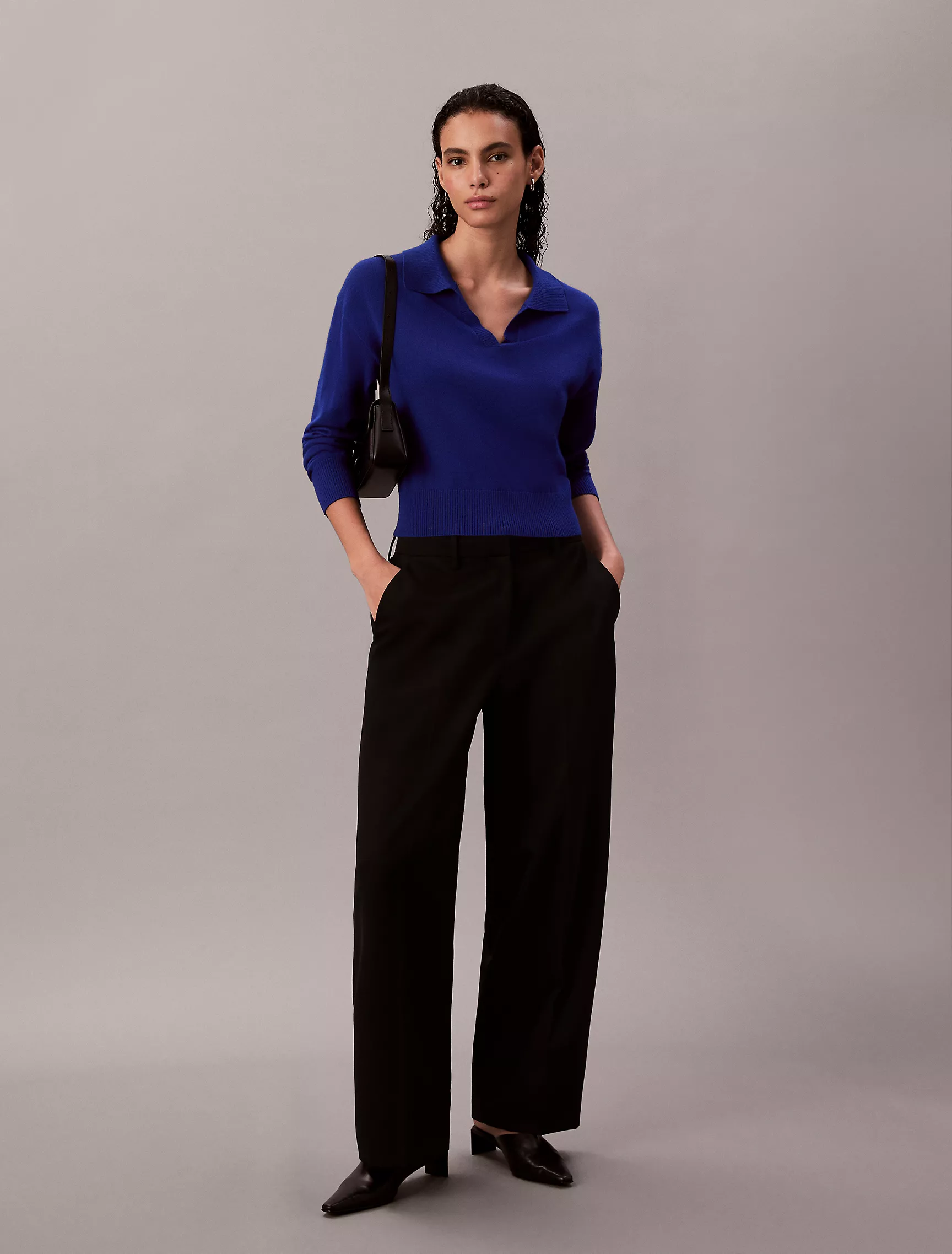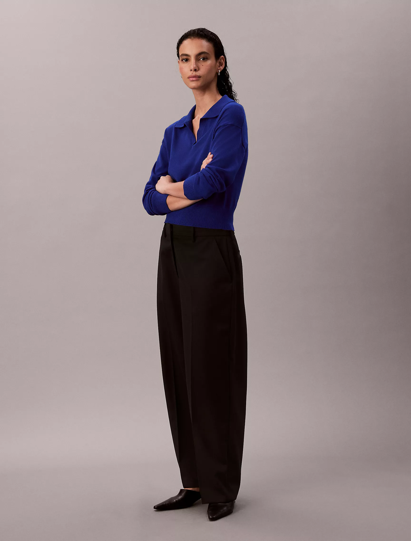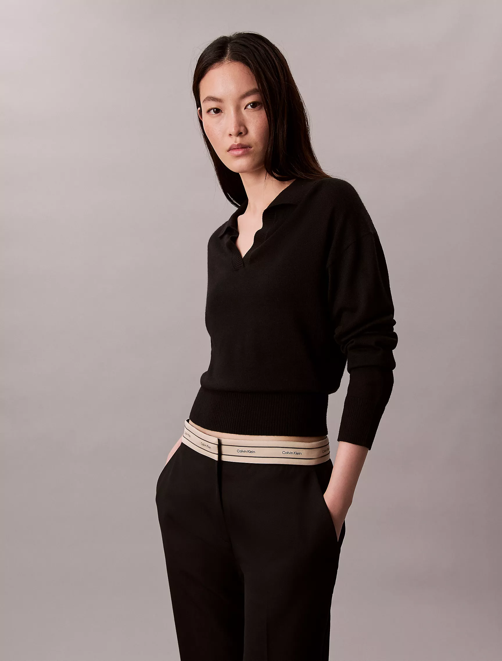 Calvin Klein Merino Wool Blend Relaxed Polo Sweater | Rivella Couture