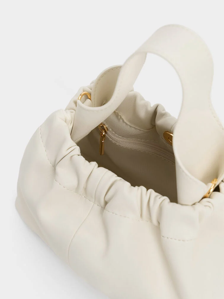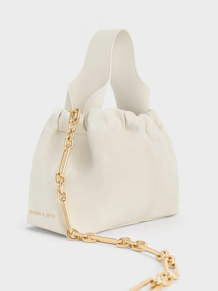 Charles & Keith Ally Ruched Slouchy Chain-Handle Bag – Cream