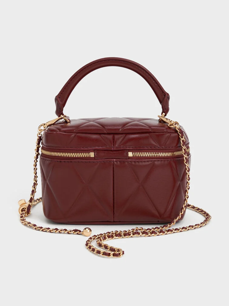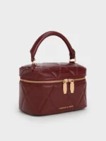 Charles&Keith NEW Arwen Quilted Top Handle Vanity Bag – Burgundy