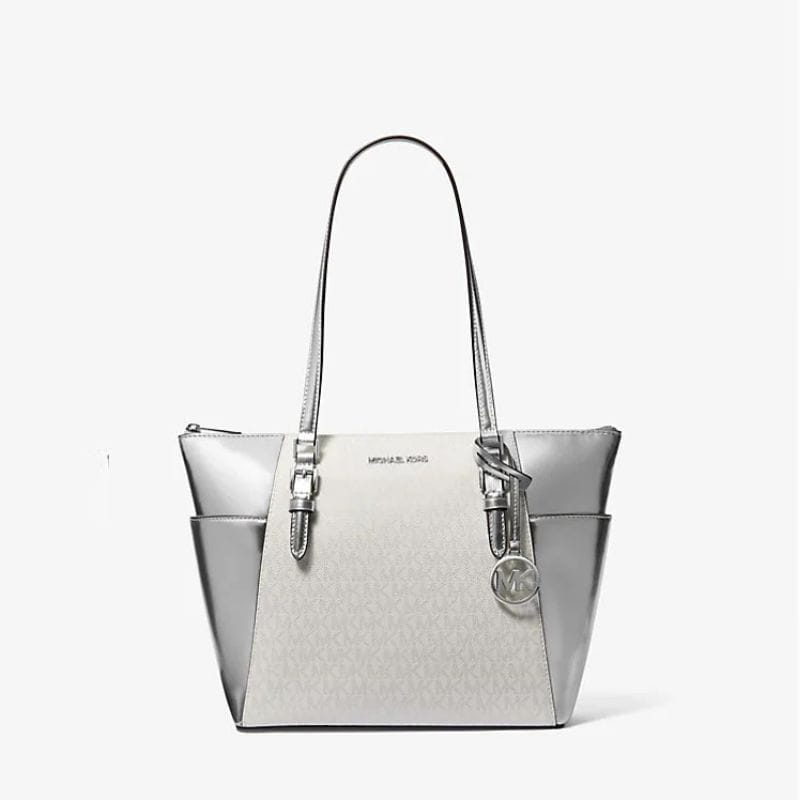 Charlotte Large Signature Logo and Metallic Tote Bag