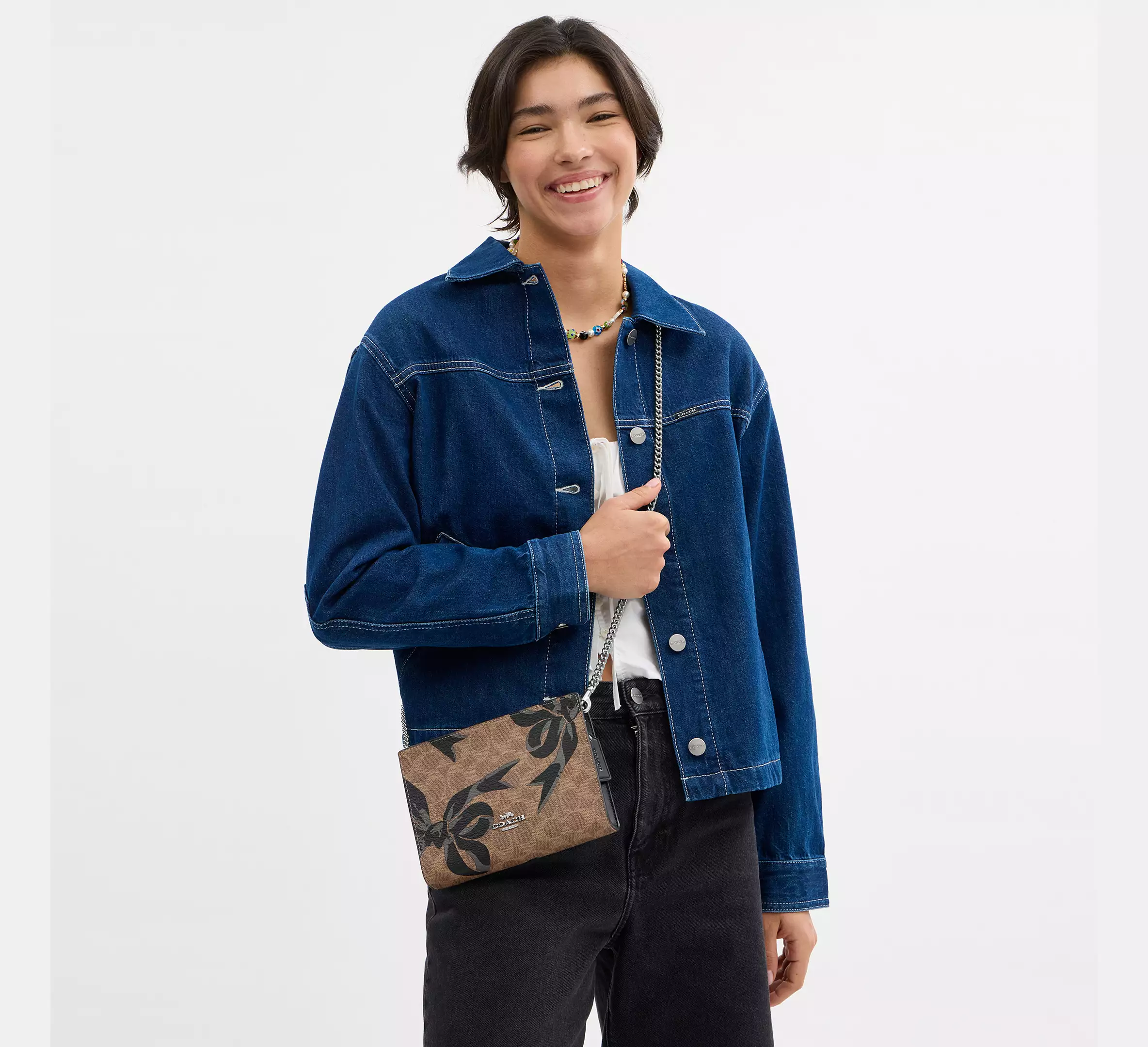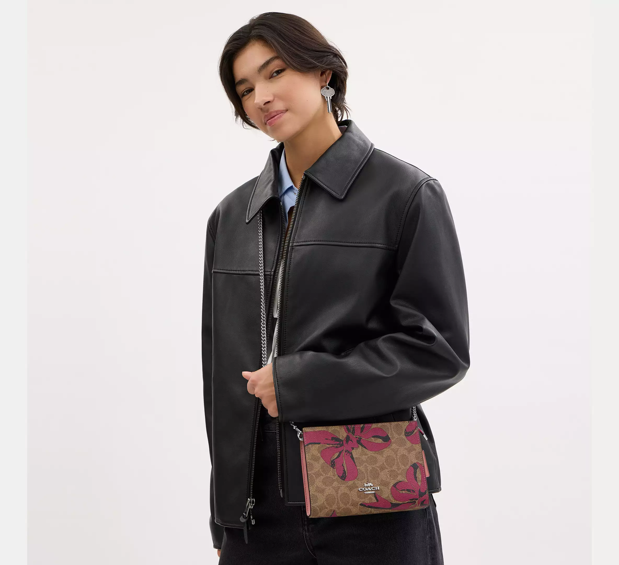 Coach Slim Crossbody Bag In Signature Canvas With Bow Print