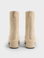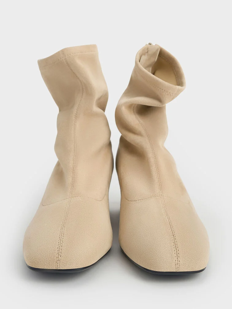 Faux Suede Stitch-Trim Heeled Ankle Boots – Sand
