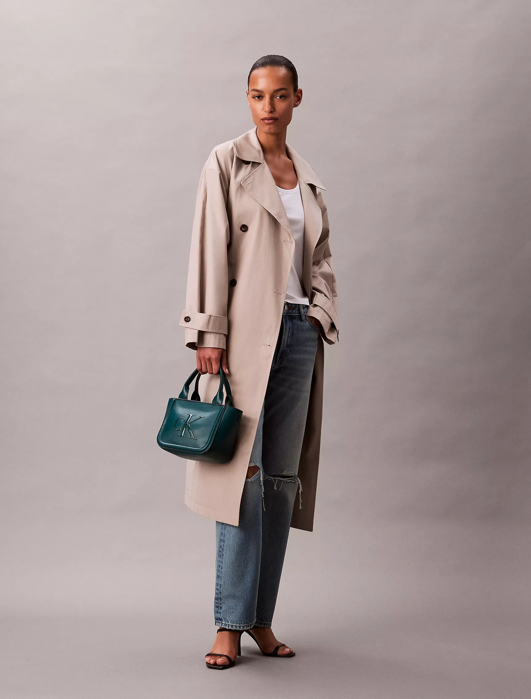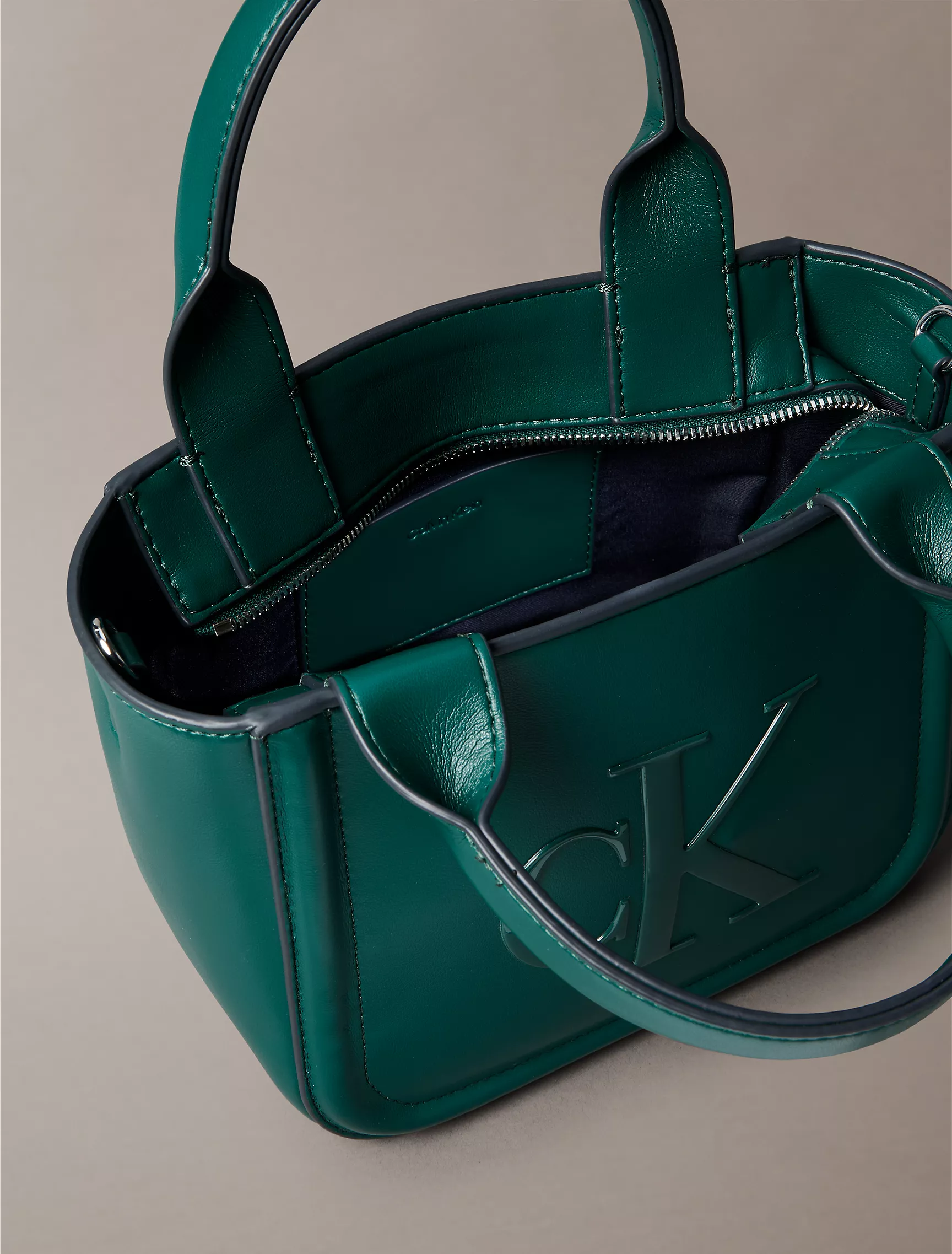 Simple, minimalist form with an embossed logo at the front. This tote bag has a top zip closure and rounded handles. Designed with a removable shoulder strap for convertible wear.