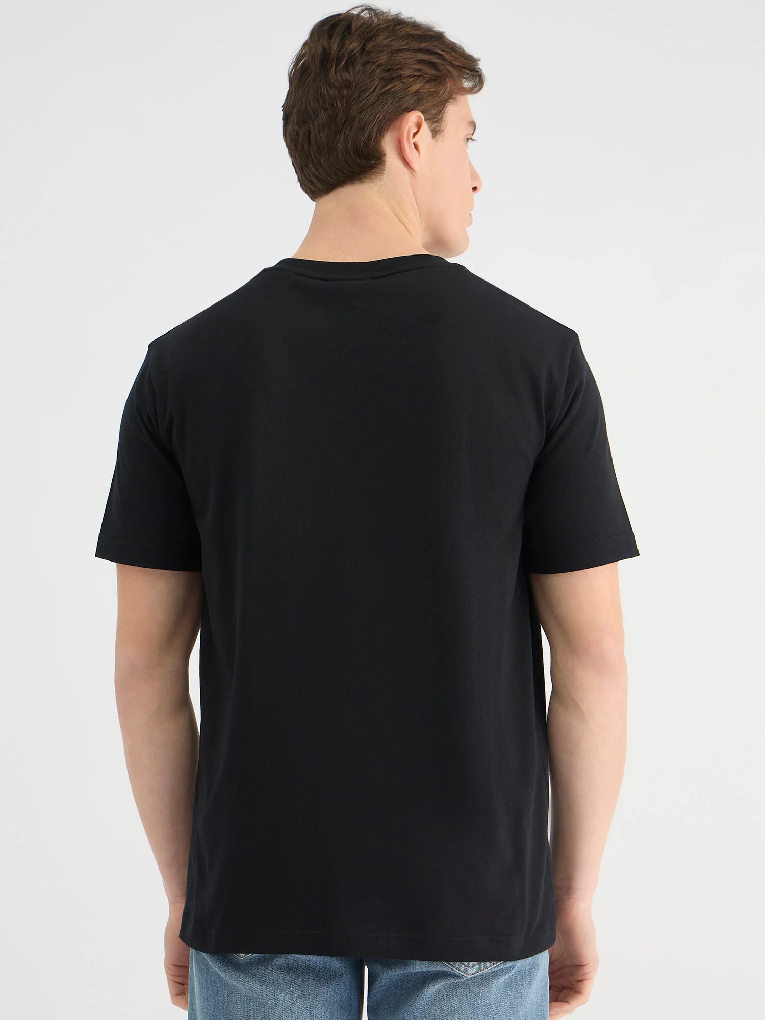 A timeless classic, this black t-shirt boasts a unique typography pattern that adds a touch of personality. Crafted from pure cotton, it offers a comfortable regular fit and a soft feel against your skin. The short sleeves and round neck provide a relaxed and versatile look, perfect for everyday wear.