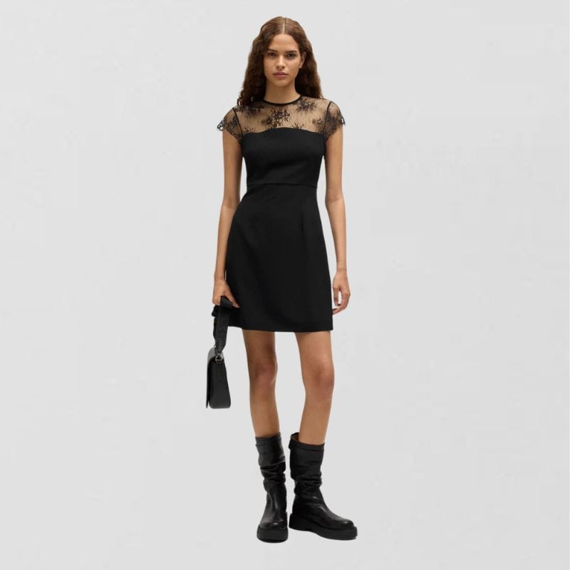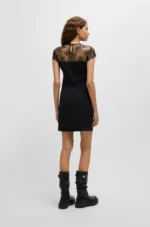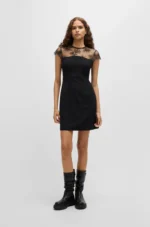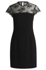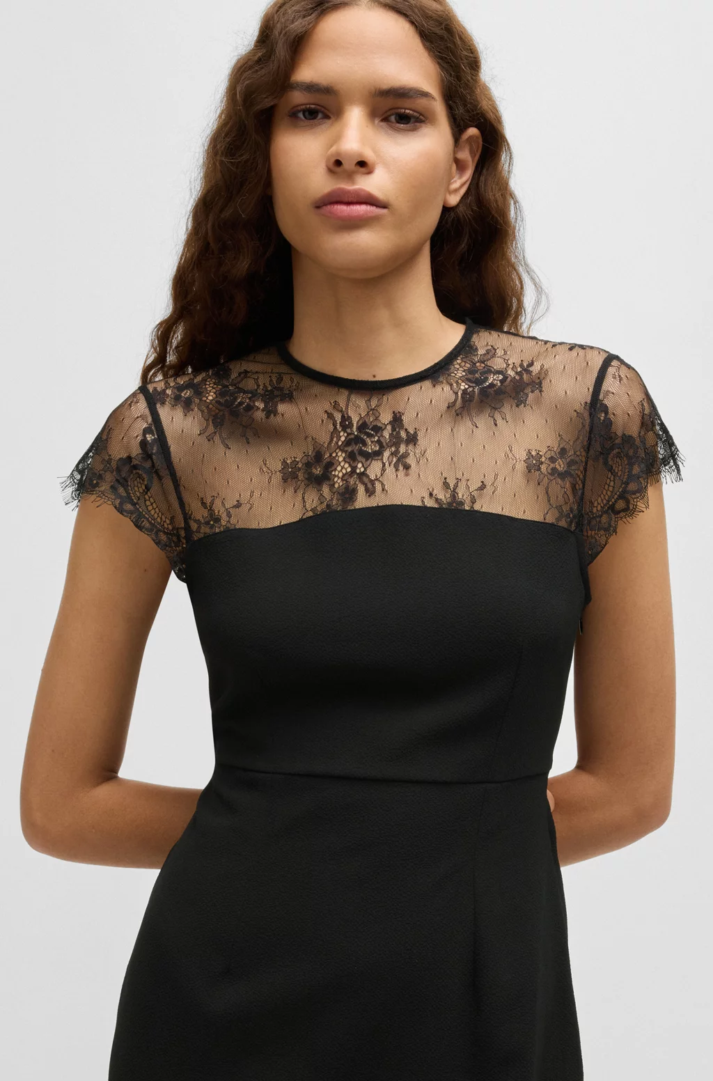 -43%A modern short-sleeved dress by BOSS. This slim-fitting piece is crafted in feminine crepe Georgette with lace detailing at the upper body.