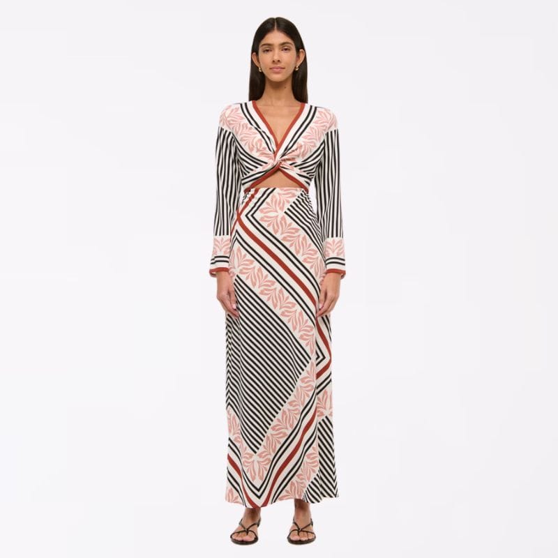 Flattering long-sleeve maxi dress in our sleek matte satin fabric, featuring a v-neckline, on-trend twist-front detail and open tie-back detail. Imported.