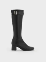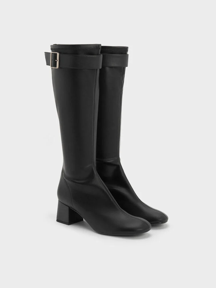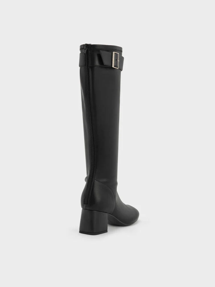 NEW* Gerry Buckled Block-Heel Knee-High Boots – Black