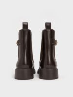 NEW*Lando Faux Suede Metallic-Buckle Chelsea Boots – Dark Brown
