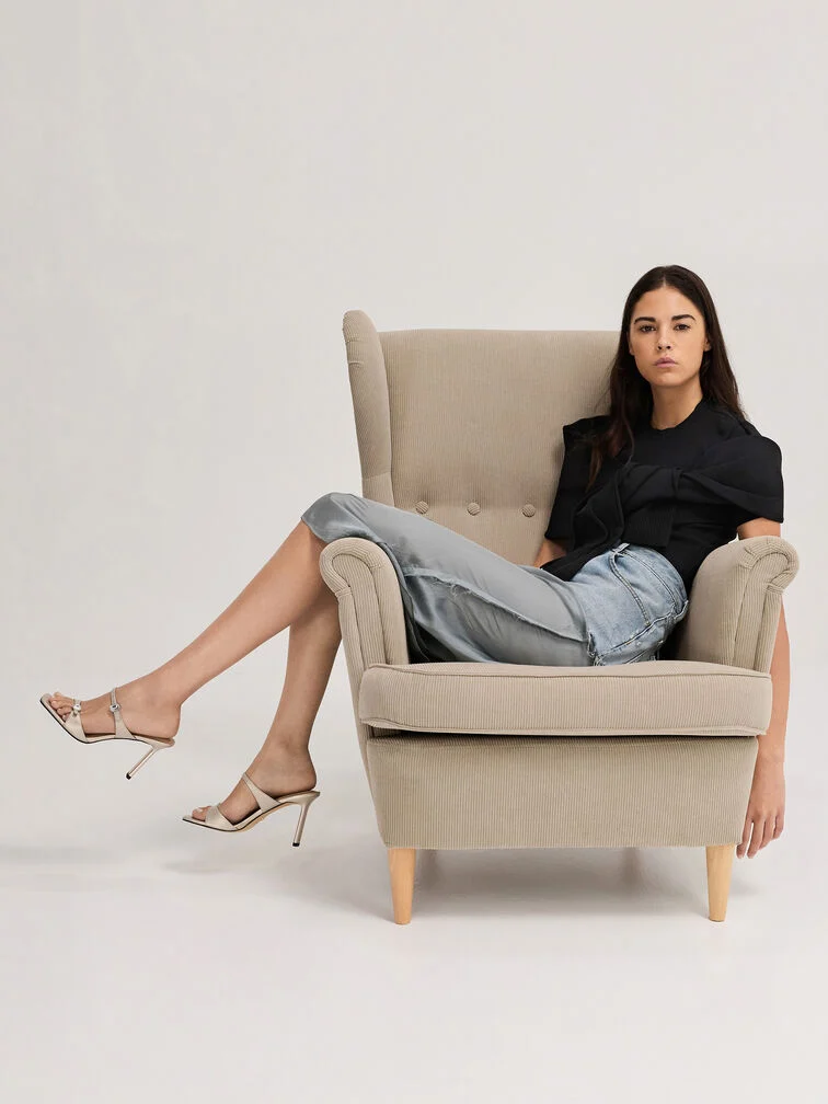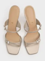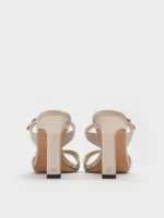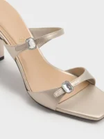 Pearlescent Leather Gem-Buckle Double-Strap Heeled Sandals – Ivory