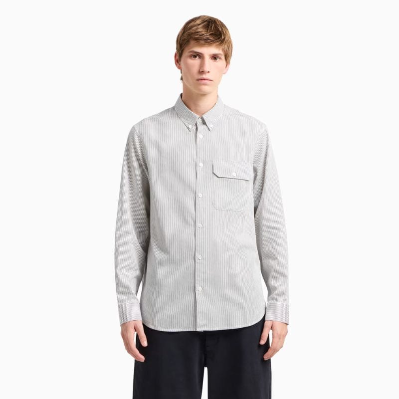 This regular-fit striped pure cotton shirt is a versatile and refined piece, ideal for any occasion. Crafted from soft and breathable cotton, it offers a comfortable and comfortable fit. The thin striped design adds a touch of understated elegance, while the button-down collar adds a classic and refined detail. With long sleeves and contrasting buttons, it is perfect for formal or casual looks, ideal to pair with elegant trousers or jeans for a versatile outfit.