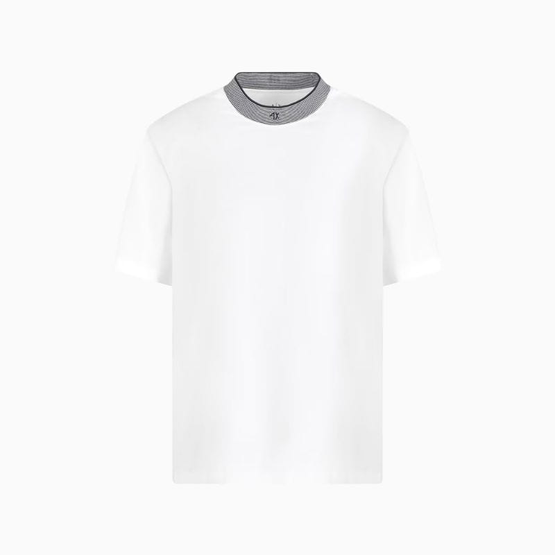 This regular-fit cotton t-shirt combines comfort and unique style. Made of soft cotton, it offers a comfortable and breathable fit, ideal for leisure time. The design is enriched by a round neckline with contrasting striped profile, which adds a dynamic and modern touch. The embroidered logo in the center gives a refined and discreet detail. Perfect for a casual and versatile look, this t-shirt can be easily paired with jeans or trousers for a fresh and stylish outfit.
