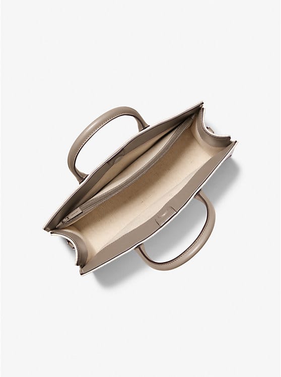 It’s easy to see why the Scarlett satchel is the forever bag you’ll return to season after season. This carryall is crafted from logo jacquard with patent-leather trim and boasts a canvas-lined interior with a large zip pocket for storing small valuables. Attach the crossbody strap when you want to go hands-free.