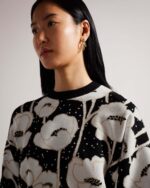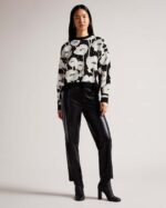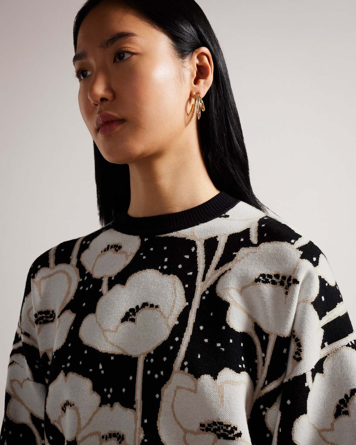Ted Baker PIPHA Cropped Jacquard Knitted Sweater Women Sweaters Black