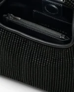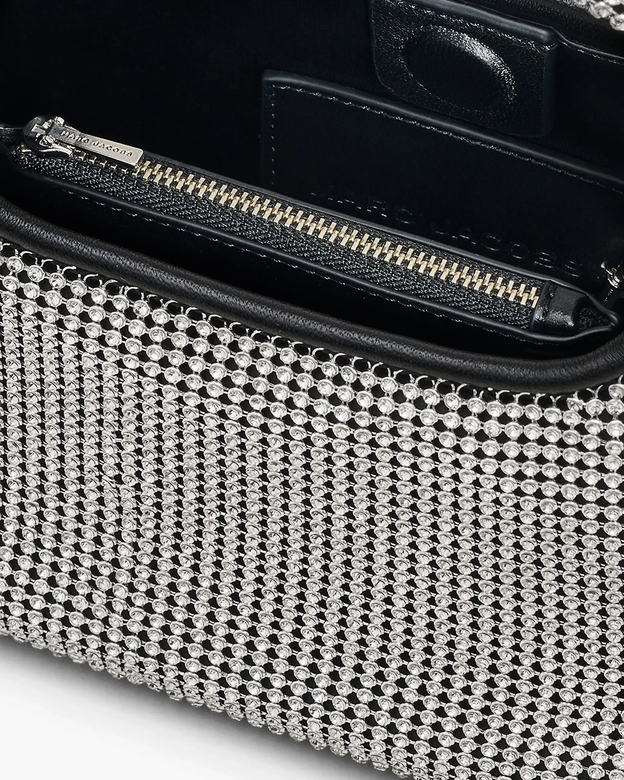 A dazzlingly glamorous reinterpretation of the iconic Mini Sack Bag, opulently embellished with allover rhinestones. Minimalistic in design, this remarkably roomy handheld essential features a removable inner pouch and effortlessly secure magnetic closure. Slouchy, lightweight and punctuated with iconic namesake branding, this sophisticated handbag is quintessential style and function.
