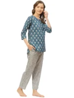 Women & Cotton Printed Night Suit Set Of Top & Pajama Set