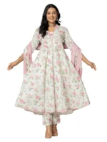 Women’s Cotton Printed Anarkali Kurta with Palazzo Pants and Dupatta