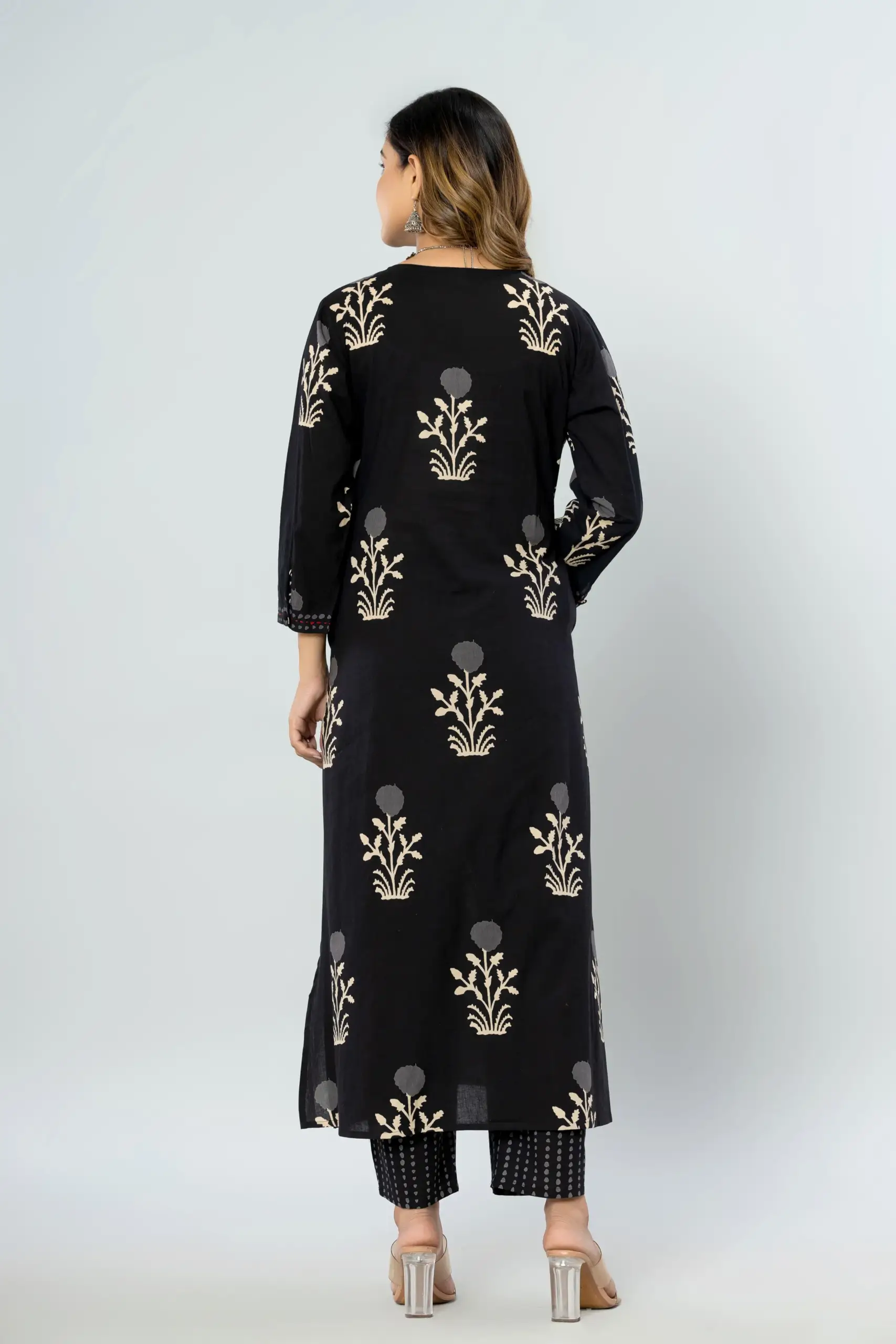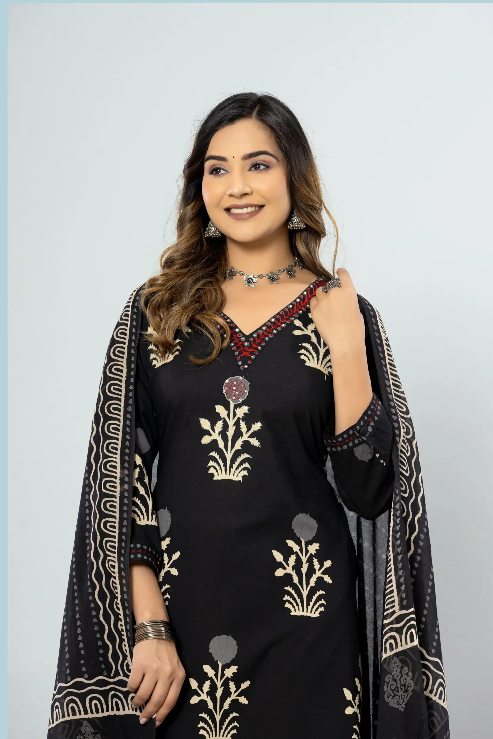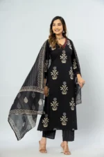 Women’s Cotton Printed Straight Kurta with Pant and Dupatta Set